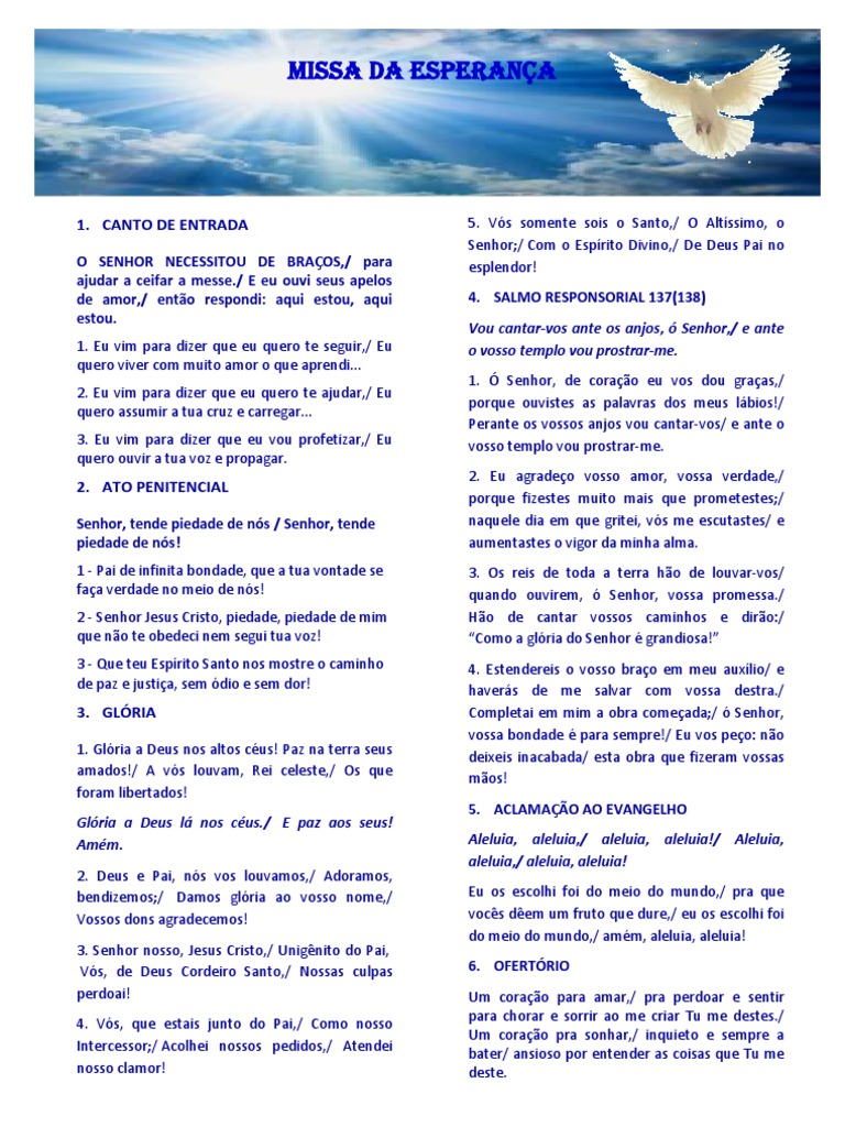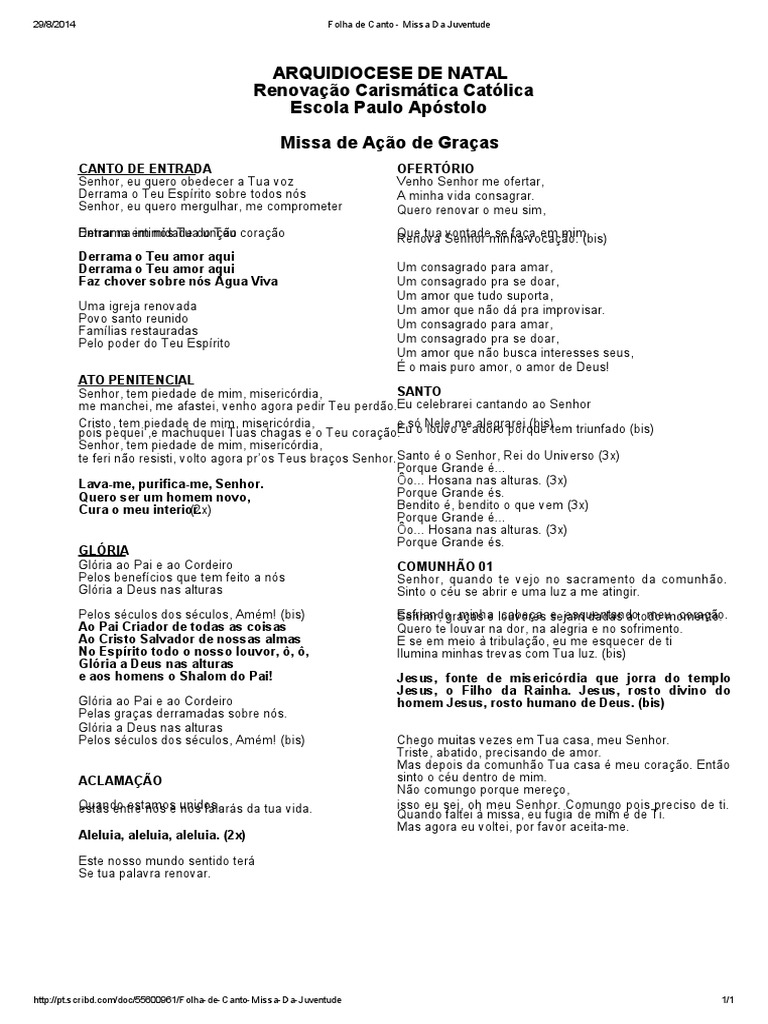 Folha de Canto Missa Da Juventude Eucaristia Missa (Liturgia)
