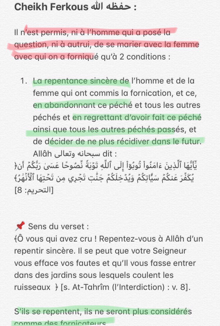 Les versets du Coran sur la fornicationPage 7 Remarque n°1 : La règle jurisprudencielle : 'Les moyens venants vers un objectif et les choses. Les conséquences de la fornication sur la famille de la personne qui l'a. musulman applique les peines prescrites prévues par l'Islam, il est recommandé à la personne de se repentir, de.