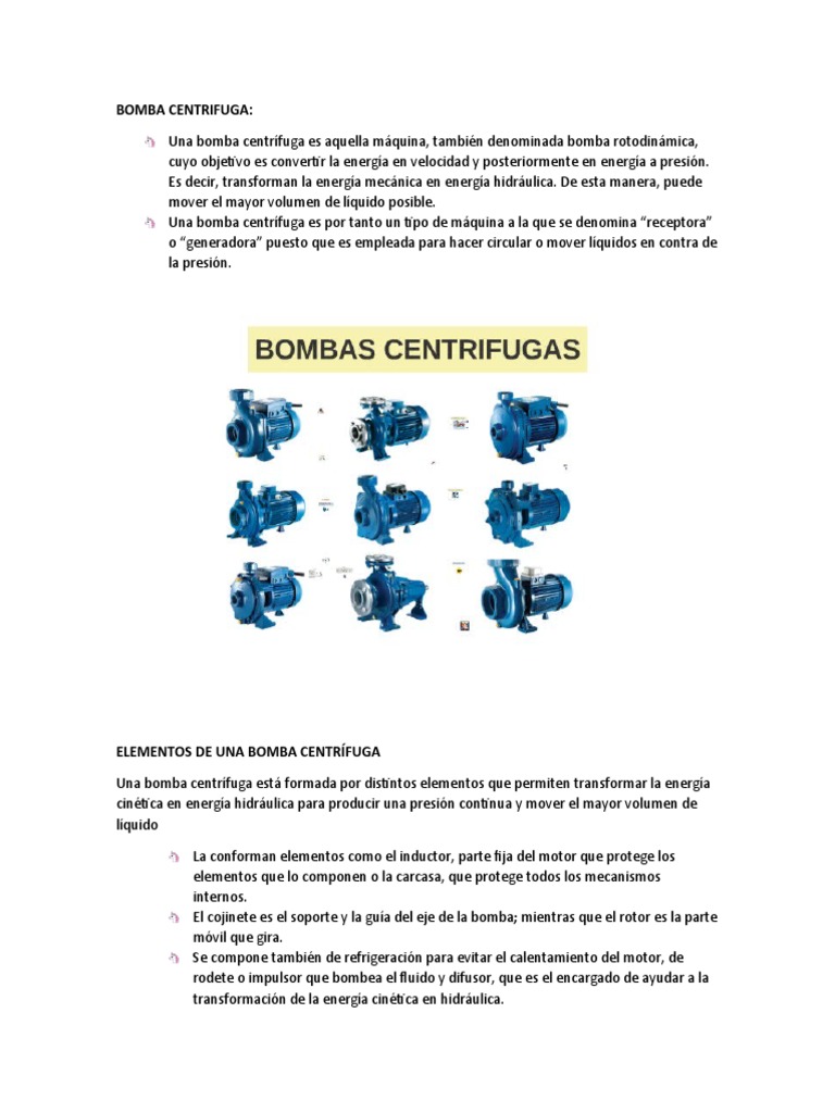 BOMBA CENTRÍFUGA Que es, como funciona y para que sirve
