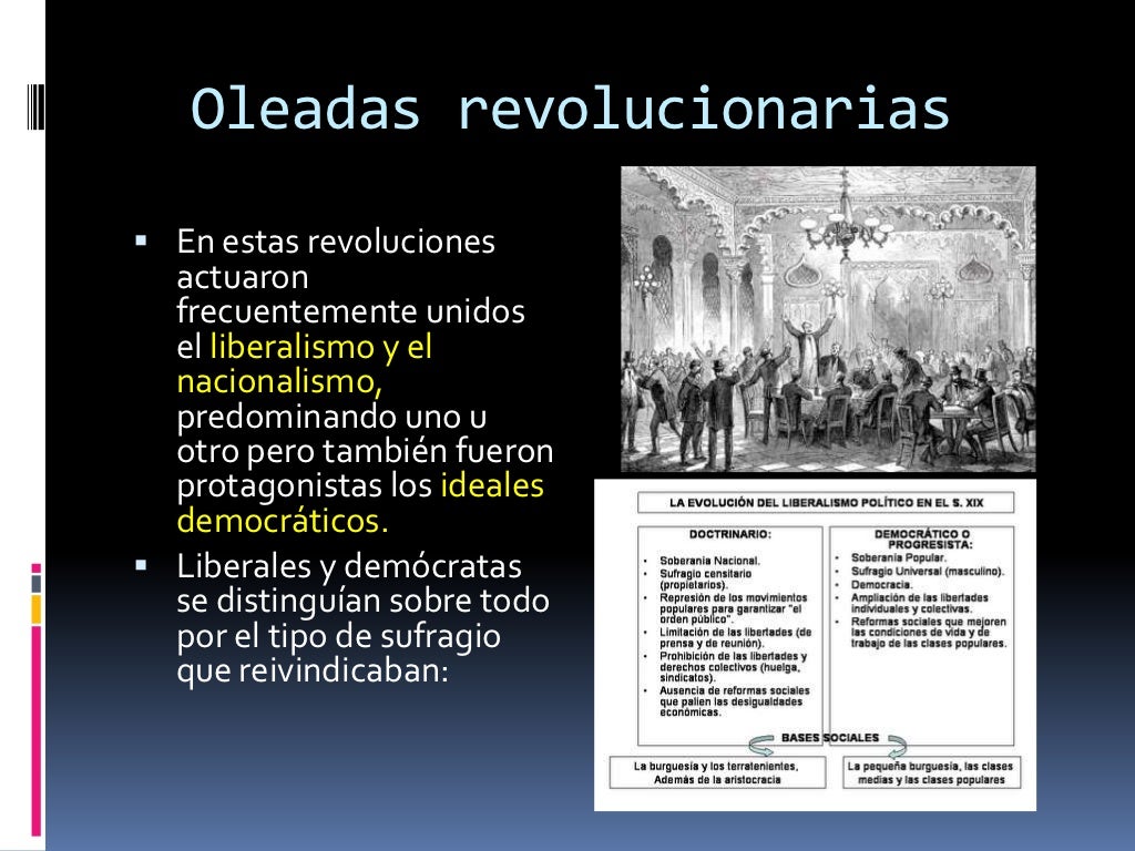 Como consecuencia del fortalecimiento de la burguesía y de la difusión del movimiento de la Ilustración en el siglo XVIII, se consolida el movimiento político del Liberalismo, que se une a otro nuevo movimiento, el Nacionalismo. Ambos en conjunto lograron, a través de múltiples procesos revolucionarios entre finales del siglo XVIII y.